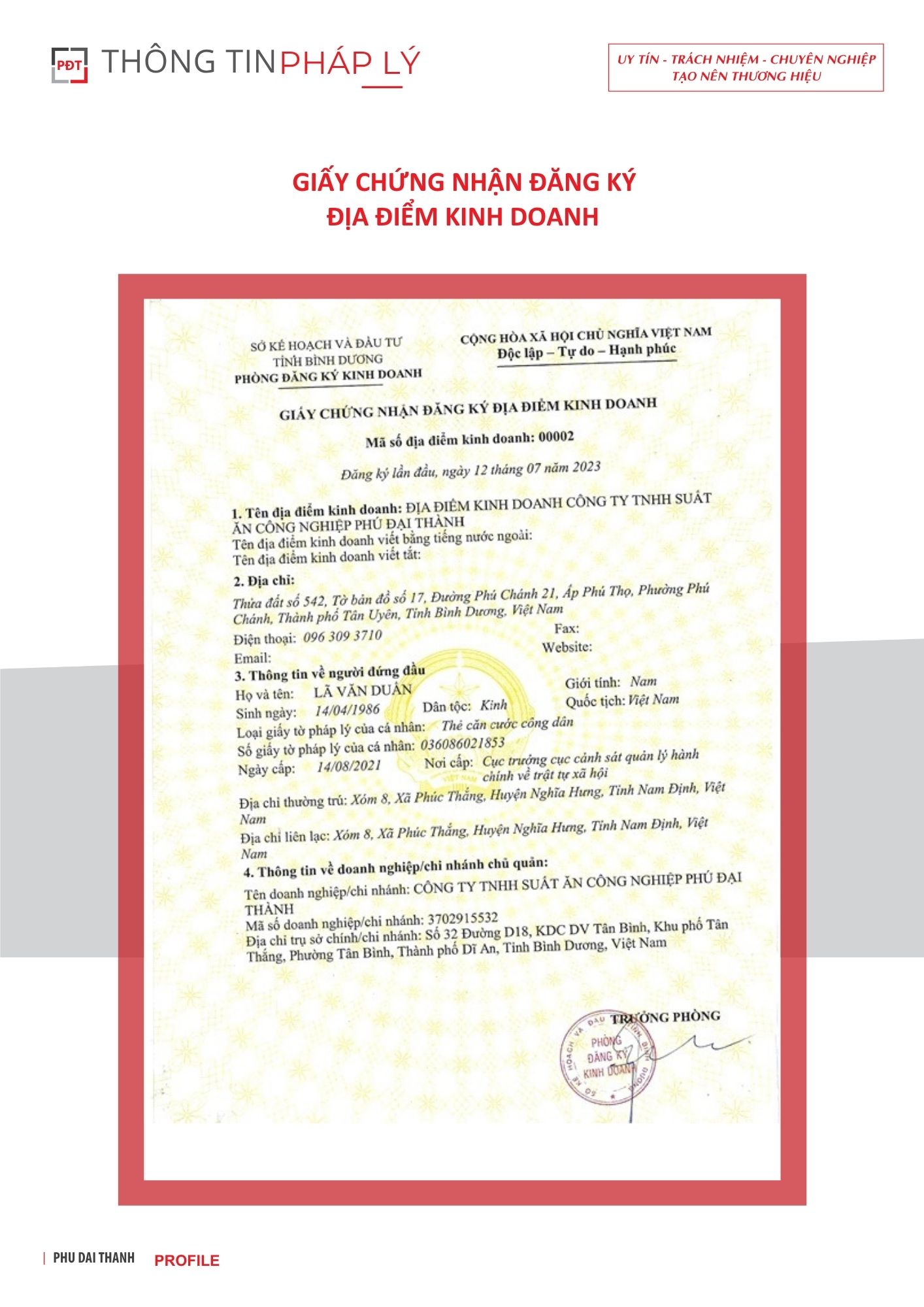 Chứng nhận Địa Điểm Kinh Doanh