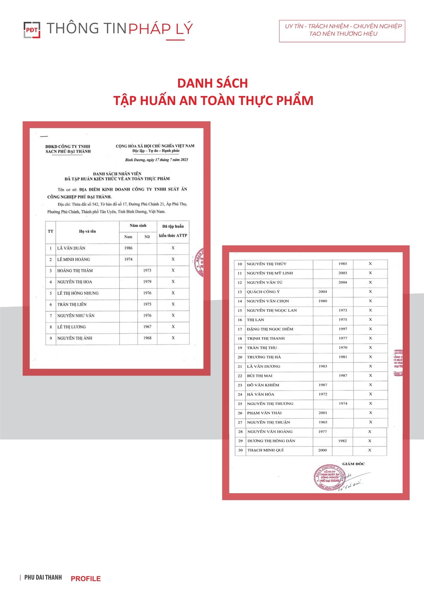 Danh Sách Tập huấn ATTP